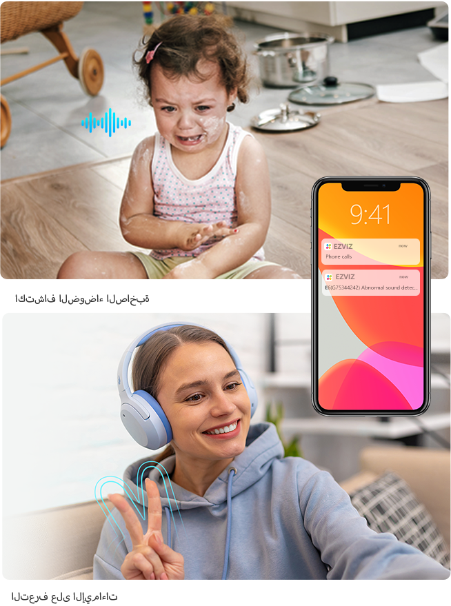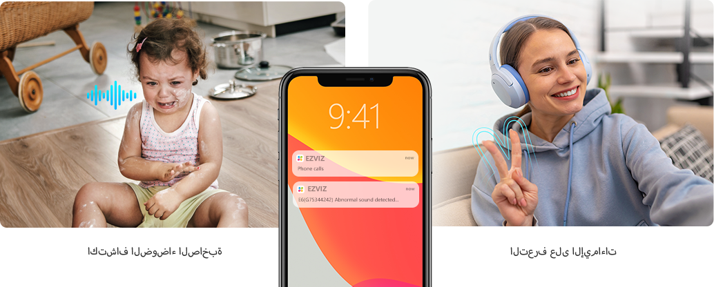 | التنبيه الذكي | اكتشاف الشكل البشري المدعوم بالذكاء الاصطناعي / اكتشاف الحيوانات الأليفة / التعرف على الإيماءات / اكتشاف النشاط الصوتي / النباح وكشف مواء |