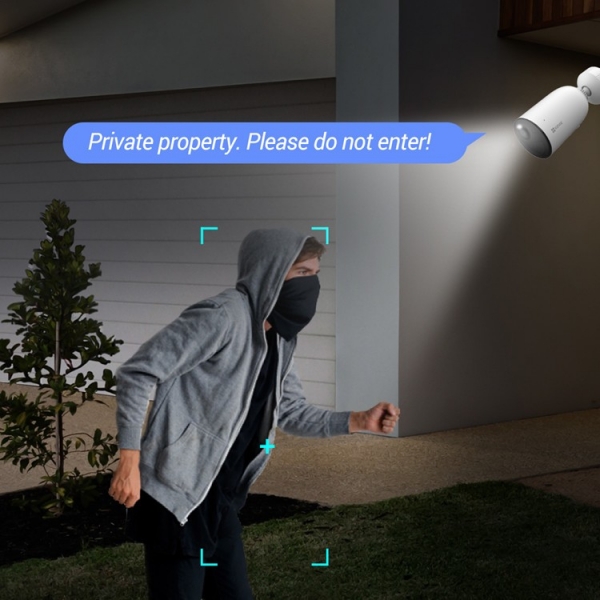 The camera features an active defense function to provide an extra layer of protection. Upon detection of intruders, the camera will set off a loud siren and flash two dazzling spotlights⁴ to let uninvited visitors know they have been detected.