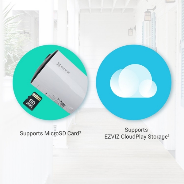 Supports MicroSD Card (Up to 256 GB) & EZVIZ Cloud Storage³
