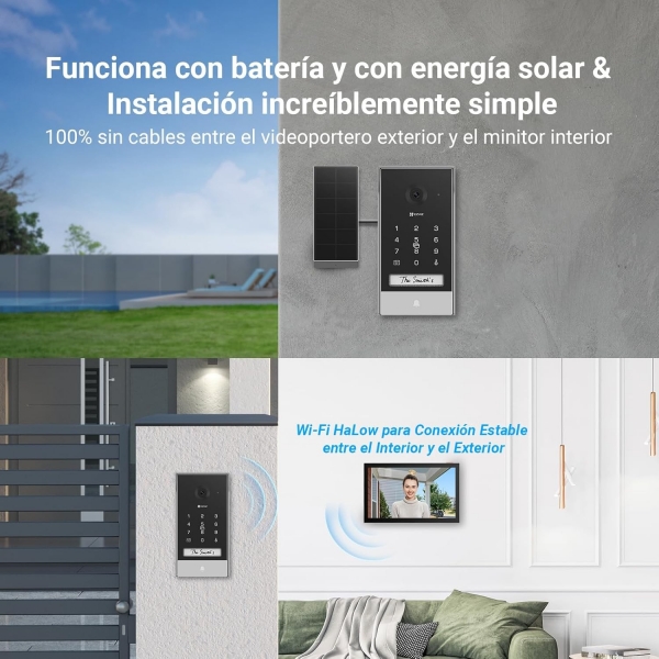 | Apertura de puerta (puerta exterior) | Compatible con dos puertos de cableado. Distancia de 1 a 10 m. El panel del intercomunicador proporciona una conexión de contacto seco sin corriente eléctrica para la conexión con el botón de la puerta exterior automática; poder de corte de la puerta exterior: 12 V/2 A |