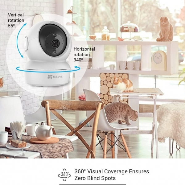 Se trata de una cámara sencilla y flexible que puede colocar en interiores para monitorizar bebés y mascotas o, también, puede utilizarla como capa de protección extra para su hogar. A diferencia de muchas otras cámaras que graban en ángulo fijo, la cámara H6c rota para capturar una visión panorámica con nítida claridad y puede incluso detectar y rastrear el movimiento de forma inteligente. Con la ayuda de la cámara H6c, nada en una amplia estancia escapará fácilmente a su atención.