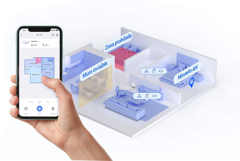 Además de mapear rápidamente su hogar, el RE5 Plus también se adapta de forma inteligente a los cambioses diarioses, ofreciendo una experiencia de limpieza a medida para cada hogar. Con la aplicación EZVIZ, puede personalizar fácilmente los planos de cada planta para las distintas zonas y habitaciones, o configurar misiones de limpieza para toda la casa.