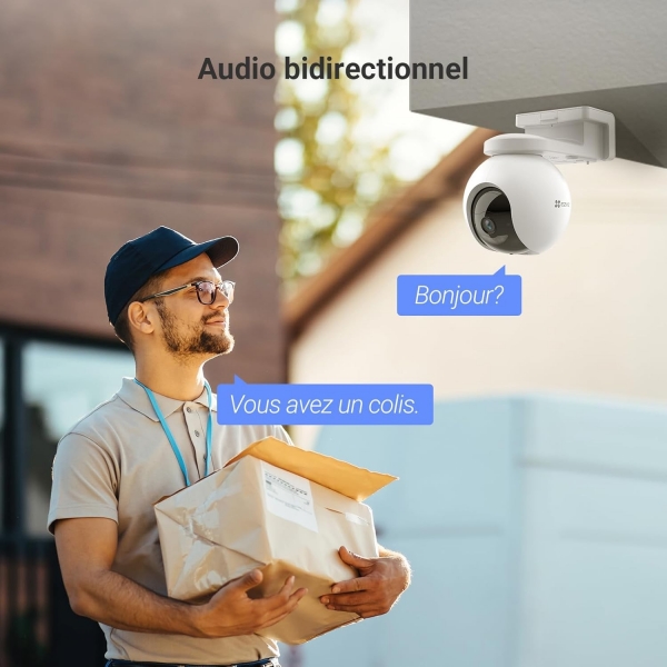 Les fonctions de panoramique et d’inclinaison de la caméra et la résolution 2K⁺ fonctionnent en tandem pour vous donner une image complète riche en détails étonnants. Ces excellentes prestations vous permettent de surveiller de vastes zones ouvertes avec un minimum d’efforts.