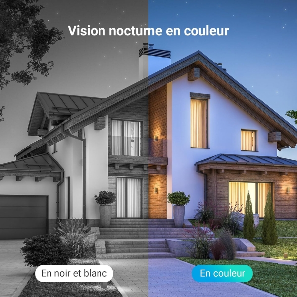 Grâce à deux projecteurs intégrés, la caméra restitue des images aux couleurs vives, même dans l’obscurité totale. Cela vous permet de voir des détails cruciaux qui passeraient autrement inaperçus.