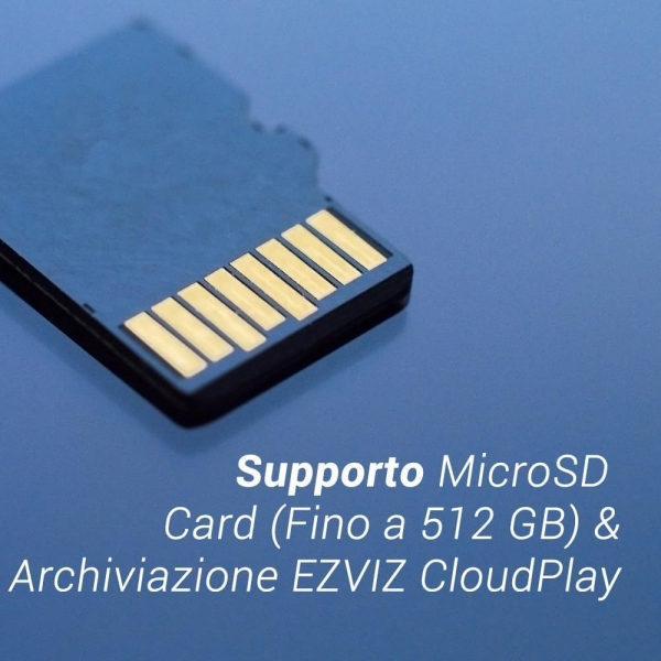 | Magazzinaggio | Supporta schede microSD fino a 512 GB Supporta l'archiviazione cloud EZVIZ |