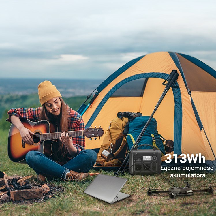 Jeśli często wyruszasz na wyprawy w plener lub od czasu do czasu spędzasz wolny czas z rodziną wśród przyrody, przenośna stacja zasilania to prawdopodobnie pierwsza rzecz, którą należy spakować. Kompaktowa stacja PS300 zasili niezbędne urządzenia elektroniczne i małe urządzenia⁵ przez port szybkiego ładowania USB-C oraz inne gniazda.