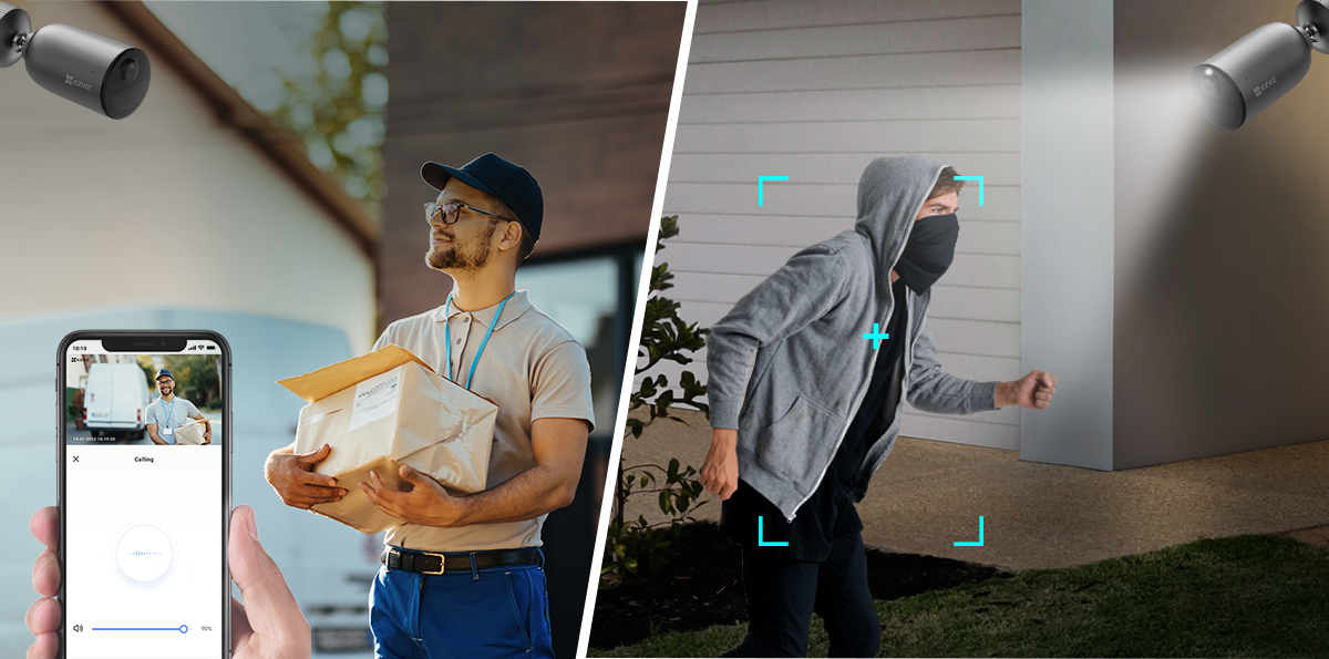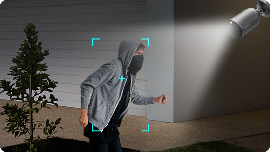 The camera features an active defense function to provide an extra layer of protection. Upon detection of intruders, the camera will set off a loud siren and flash two dazzling spotlights⁵ to let uninvited visitors know they have been detected.