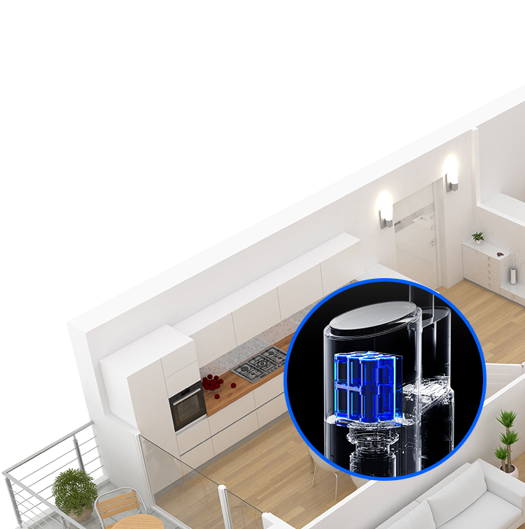 Mô-đun điện phân tích hợp giúp giảm đáng kể vi khuẩn trong nước. Giờ đây, bạn có thể cảm thấy thoải mái hơn khi đi chân trần trên sàn nhà.